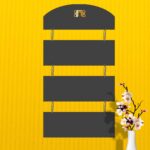 For This Used 6 mm mdf wood cutting. Digital print pasted upon wood and hit laminated material, And 4 pieces Chain Fitted and Foldable items.